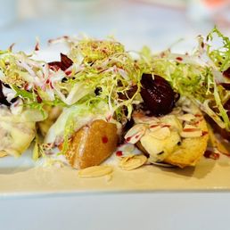 I enjoyed coming to this cafe. I came here for dinner. I liked all the meats and cheeses on the charcuterie board. The branzino was good and the sausage was flavorful as well. The cocktail I had was well made and refreshing. The restaurant has both indoor and outdoor seating available. The outdoor seating area is nice when the weather is warm. I would definitely want to come back to try some of their desserts and pastries since they looked amazing.